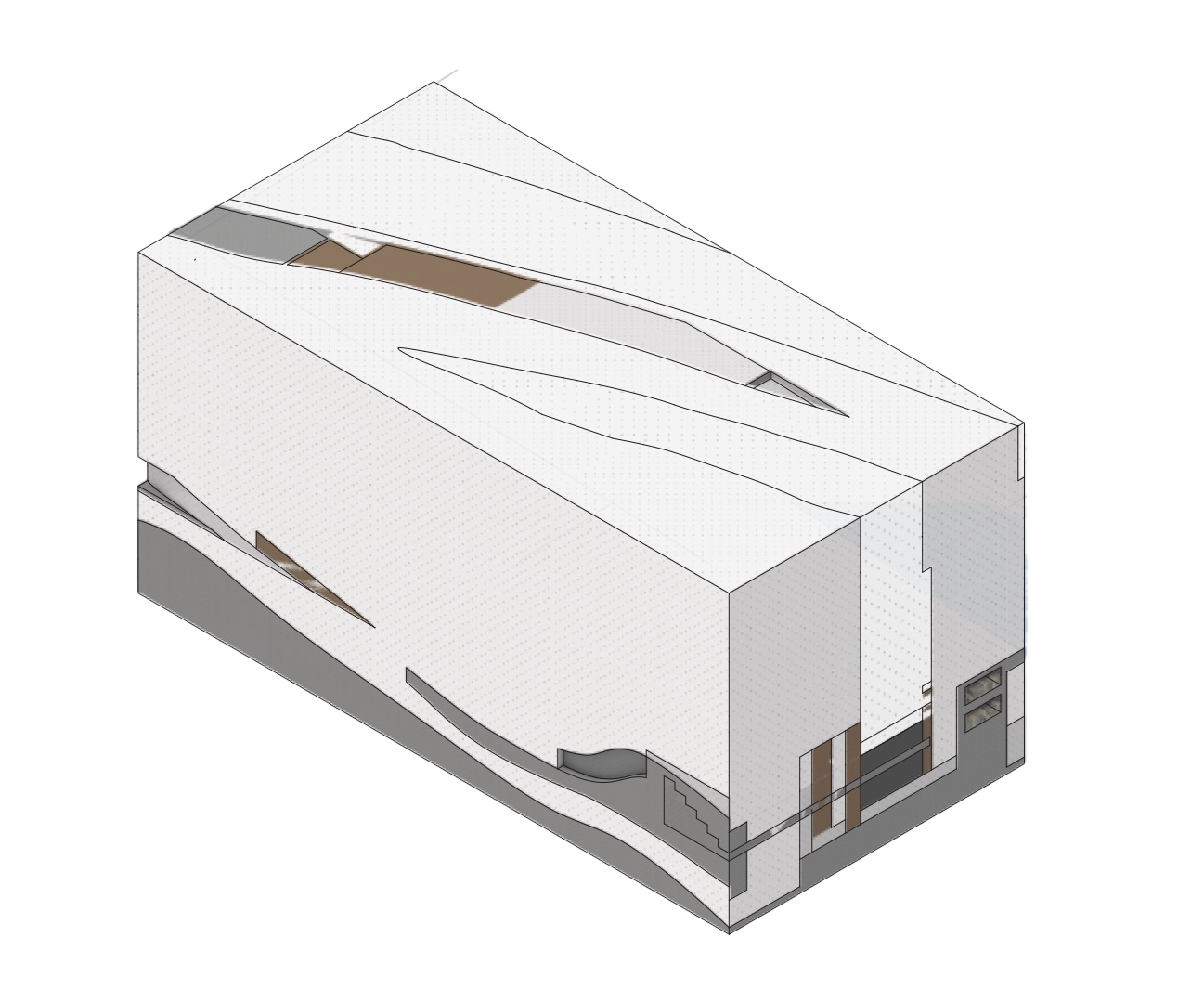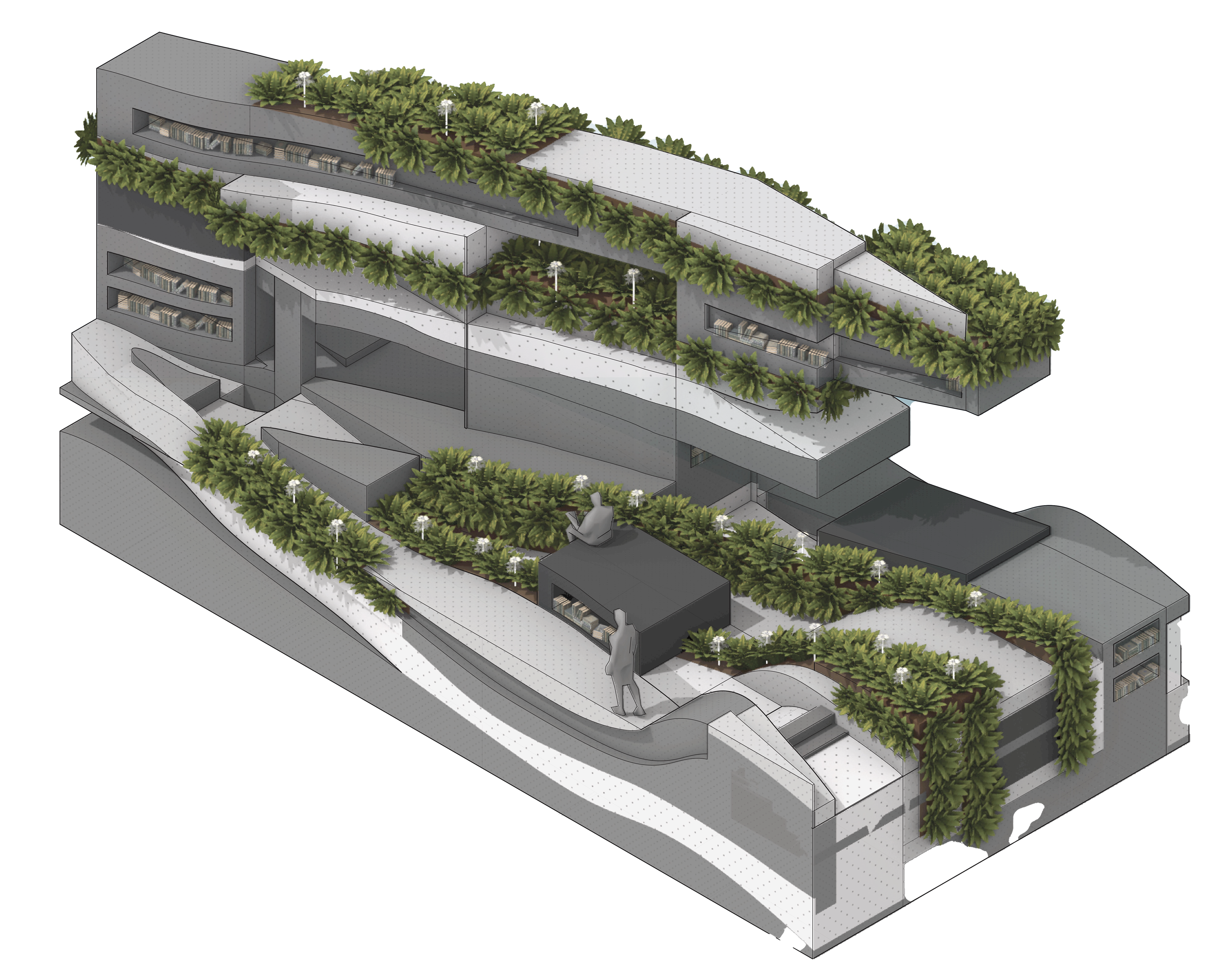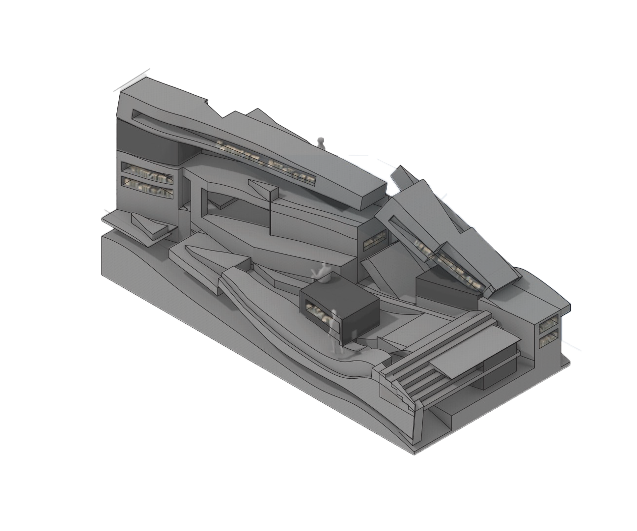 A prefabricated block of natural materials is placed along the canal edge. As time passes the materials dissolve in varying rates, revealing new environments to interact and inhabit. The five material types have varying levels of durability, and one embedded material is fertilized dirt with pre-planted seeds that will then grow into a garden as the dirt layer is revealed and the encompassing layers are dissolved.